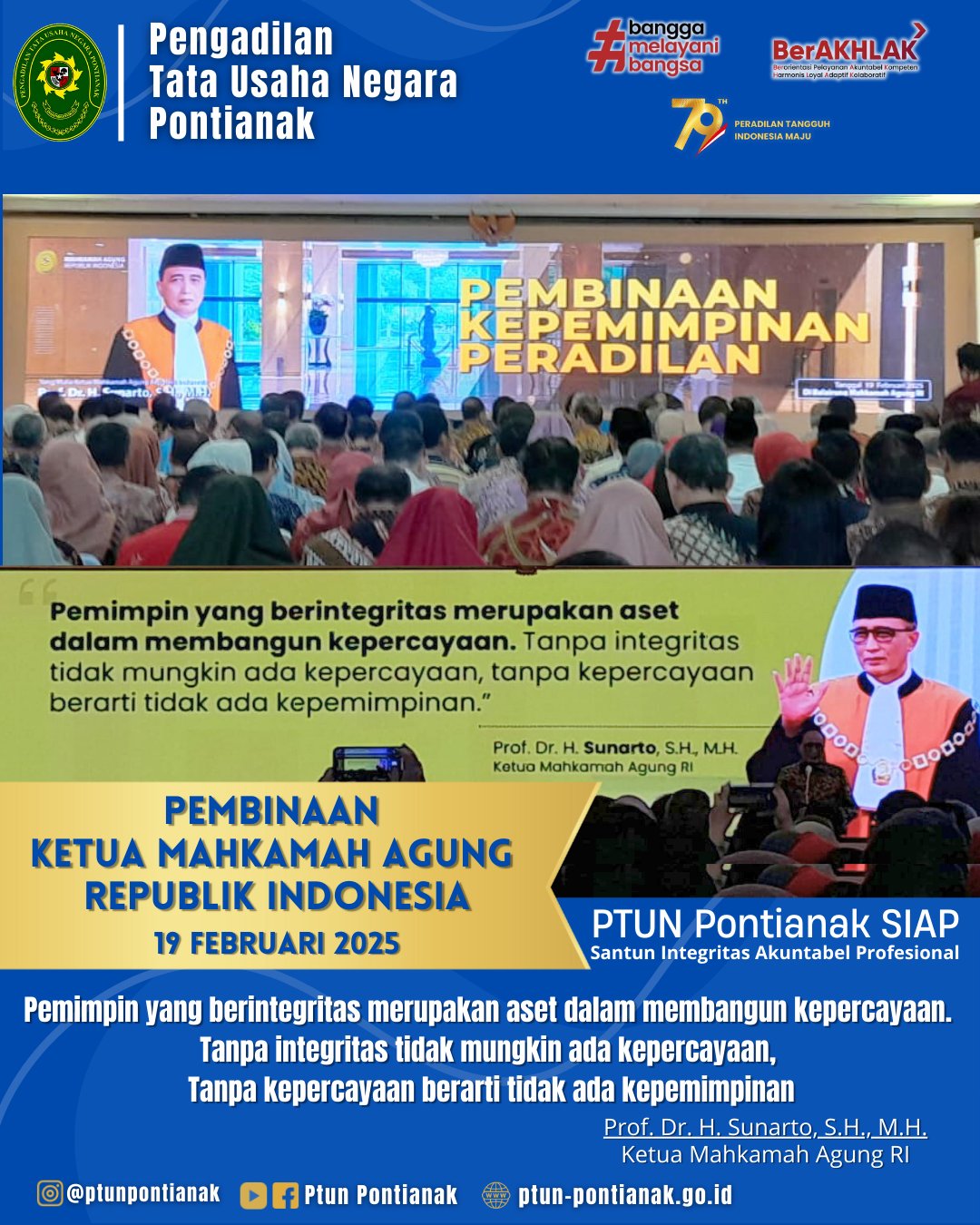 Rabu, 19 Februari 2025, Pemimpin yang berintegritas merupakan aset dalam membangun kepercayaan. Tanpa integritas tidak mungkin ada kepercayaan, Tanpa kepercayaan berarti tidak ada kepemimpinan