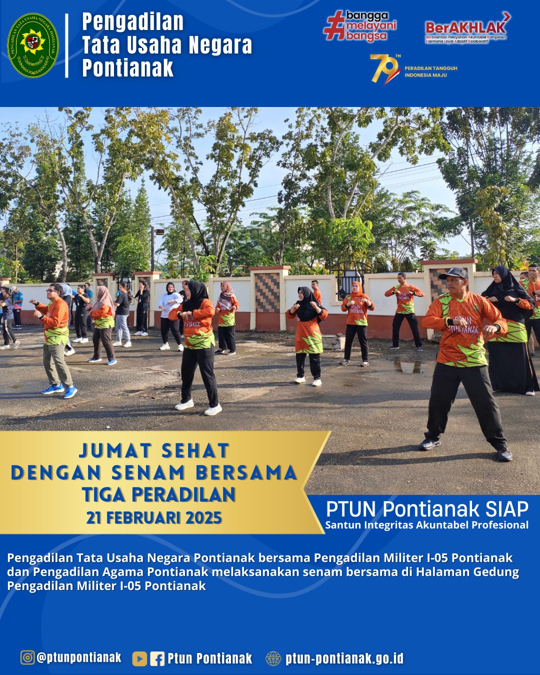 Pengadilan Tata Usaha Negara Pontianak bersama Pengadilan Militer I-05 Pontianak dan Pengadilan Agama Pontianak melaksanakan senam bersama di Halaman Gedung Pengadilan Militer I-05 Pontianak
