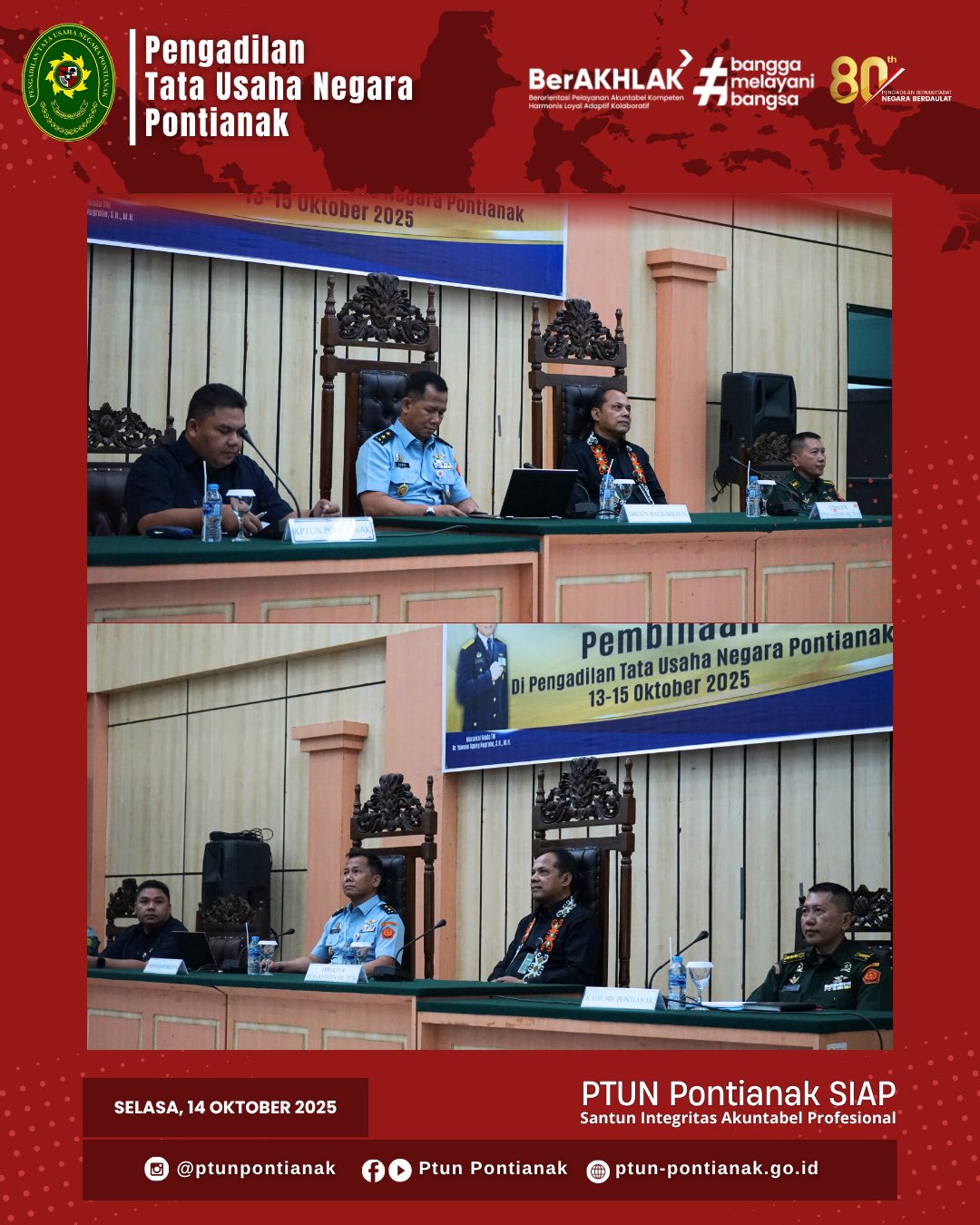 Pengadilan Tata Usaha Negara Pontianak menerima kunjungan Direktur Jenderal Badan Peradilan Militer dan Tata Usaha Negara Mahkamah Agung Republik Indonesia, Bapak Marsekal Muda TNI Dr. Yuwono Agung Nugroho, S.H., M.H., beserta rombongan, dalam rangka kegiatan Pembinaan pada Pengadilan Tata Usaha Negara Pontianak dan Pengadilan Militer I-05 Pontianak pada hari Senin, 13 Oktober 2025 - Rabu, 15 Oktober 2025.