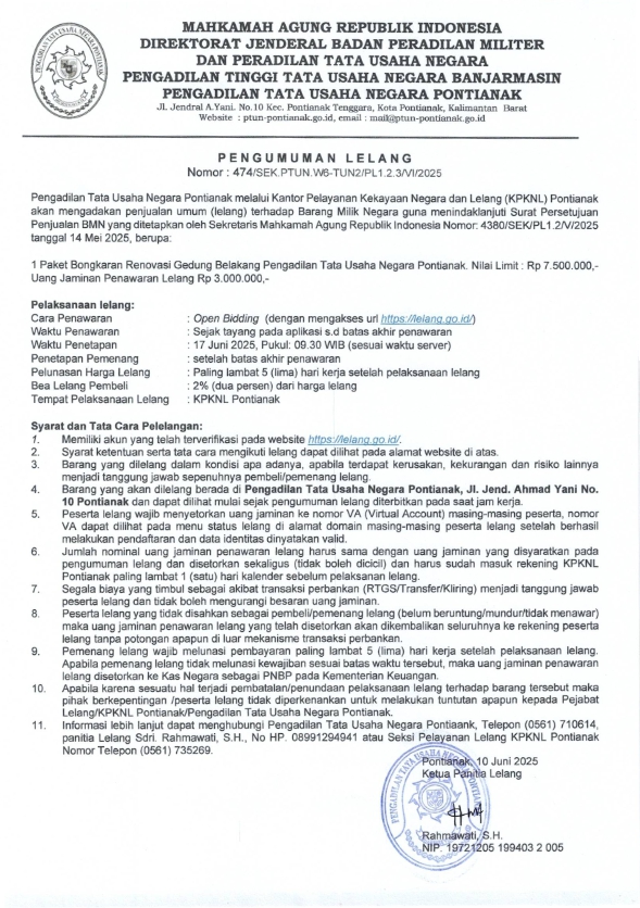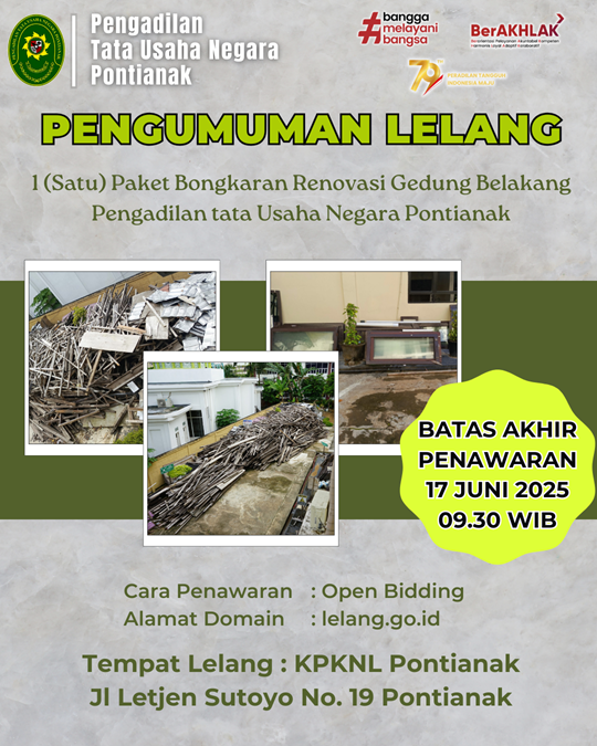 1 (Satu) Paket Bongkaran Renovasi Gedung Belakang Pengadilan Tata Usaha Negara Pontianak